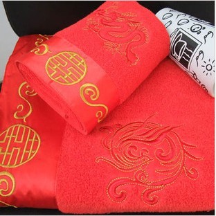 大紅色龍鳳婚禮套巾  規(guī)格35*75 成份純棉