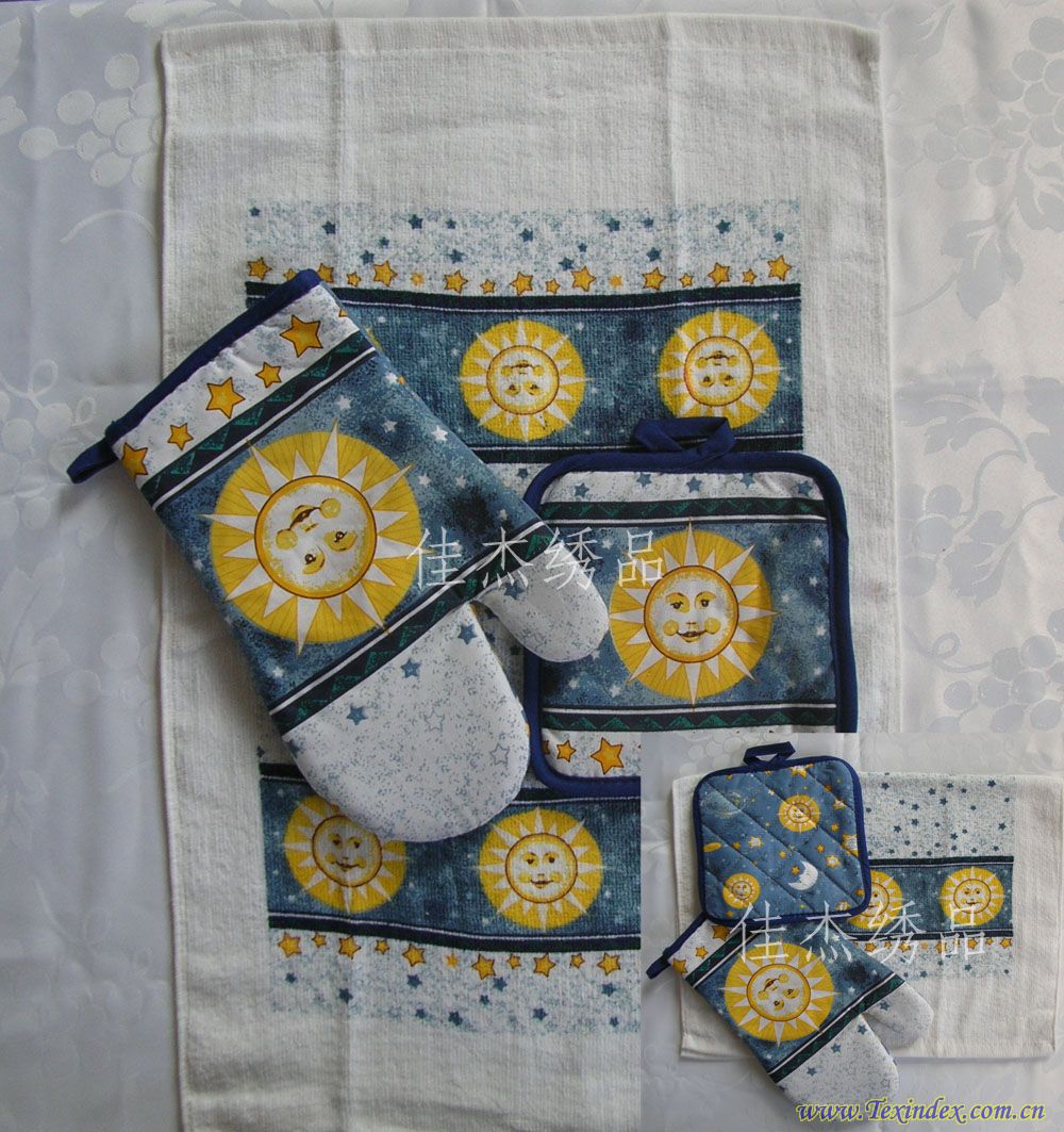 廚房套件-毛巾、微波爐手套、鍋墊  規格定制 纖維材料100%棉 品種廚房套件 工藝特點印花 產地山東淄博