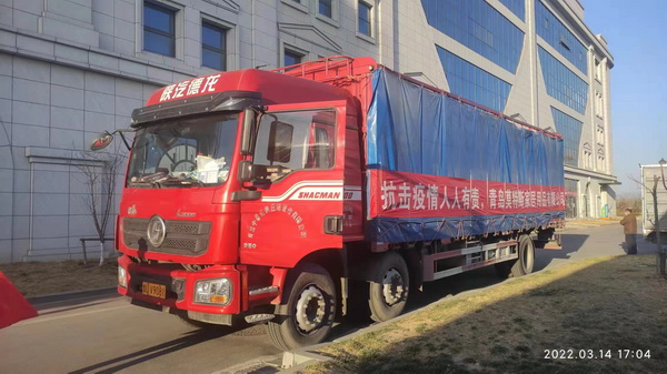 15日下午,滿載著抗疫物資的卡車,一路馳騁,將這份深情厚意和對萊西的祝福一同送達萊西。萊西加油!青島加油!